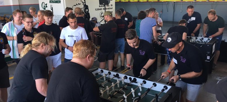 Highlight am Samstag war ein Kicker-Turnier, an dem zahlreiche Teams aus nah und fern teilnahmen. Bei bestem Wetter und ausgelassener Stimmung wurde das Turnier zu einem vollen Erfolg, nicht zuletzt Dank der akribischen Planung und Organisation, in die die Mitglieder der Löschgruppe viel Zeit und Engagement gesteckt hatten.