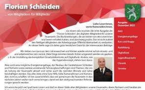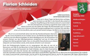 Nachfolgend finden Sie die bisherigen Ausgaben unserer Mitgliederzeitschrift "Florian Schleiden" zum Download: