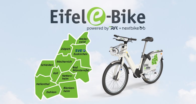 Mit dem Eifel e-Bike erhält der Kreis Euskirchen als erst zweiter Landkreis bundesweit ein flächendeckendes und 24/7-verfügbares E-Bike-Verleihsystem. Das Vorhaben wird gefördert vom Ministerium für Verkehr des Landes Nordrhein-Westfalen und betrieben in Kooperation mit dem Dienstleister nextbike.
